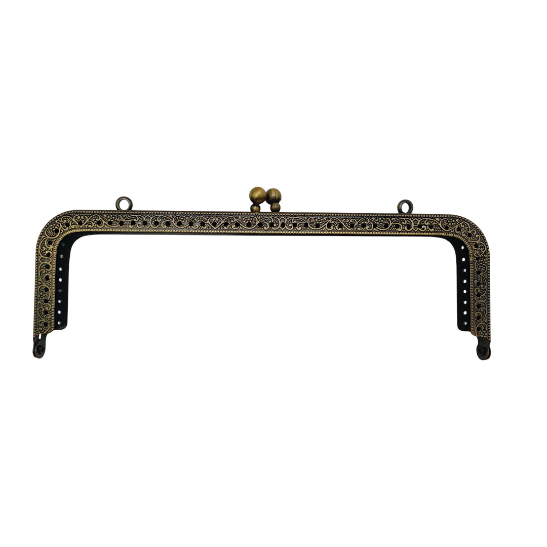 Desenli Kare Çanta Klipsi - Burs / 20 cm - Eskitme Gold (Dikmeli)