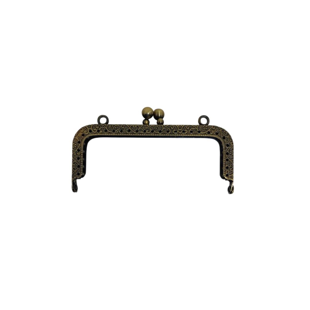 Desenli Kare Çanta Klipsi - Burs / 8 cm - Eskitme Gold (Dikmeli)