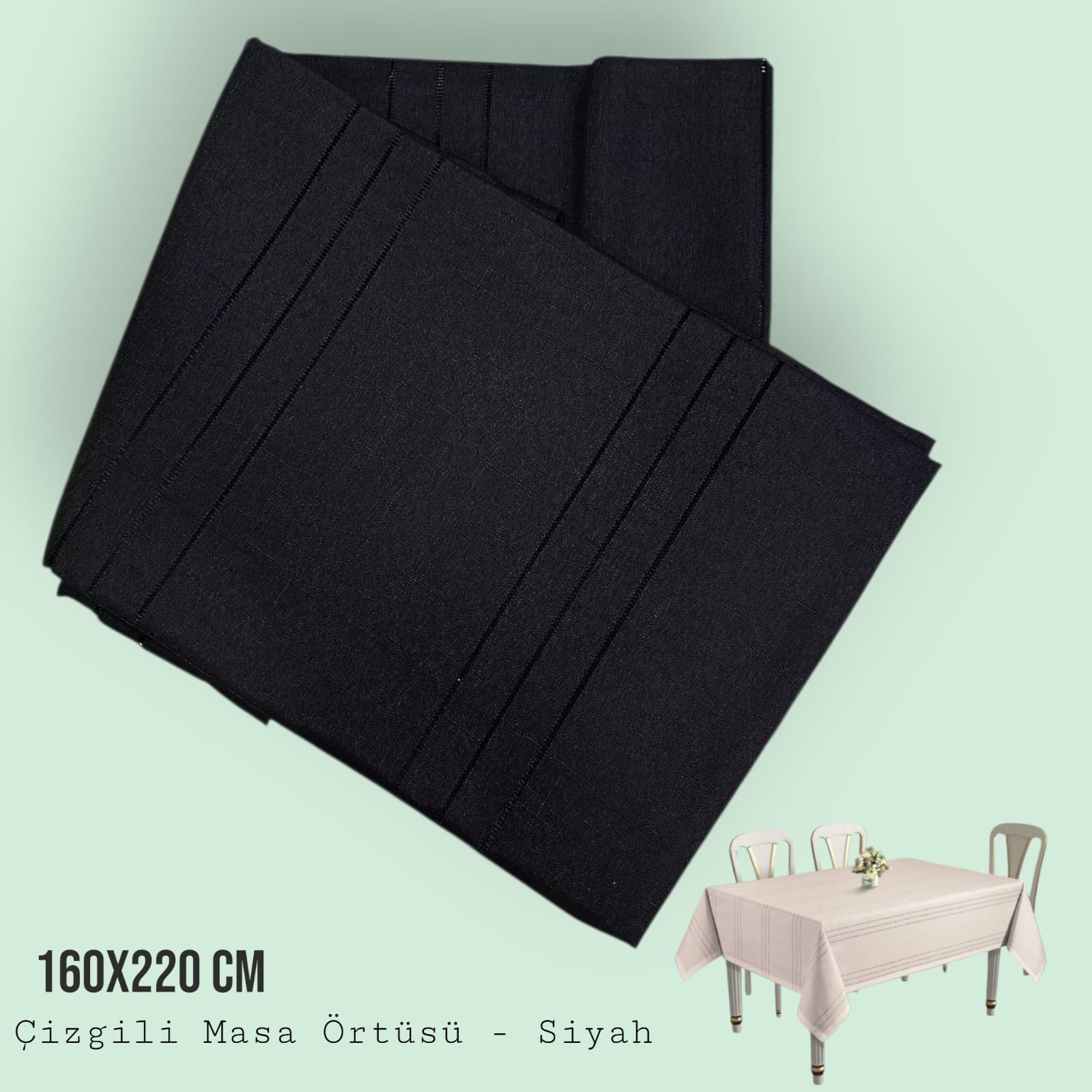 Çizgili Masa Örtüsü 160x220 - Siyah