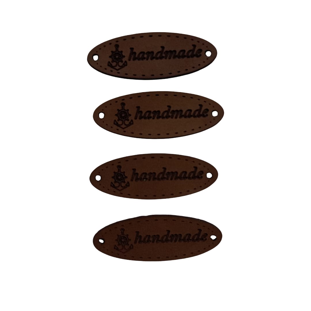 B84 - Handmade Deri Etiket (4 Adet) - 35 mm Kahverengi